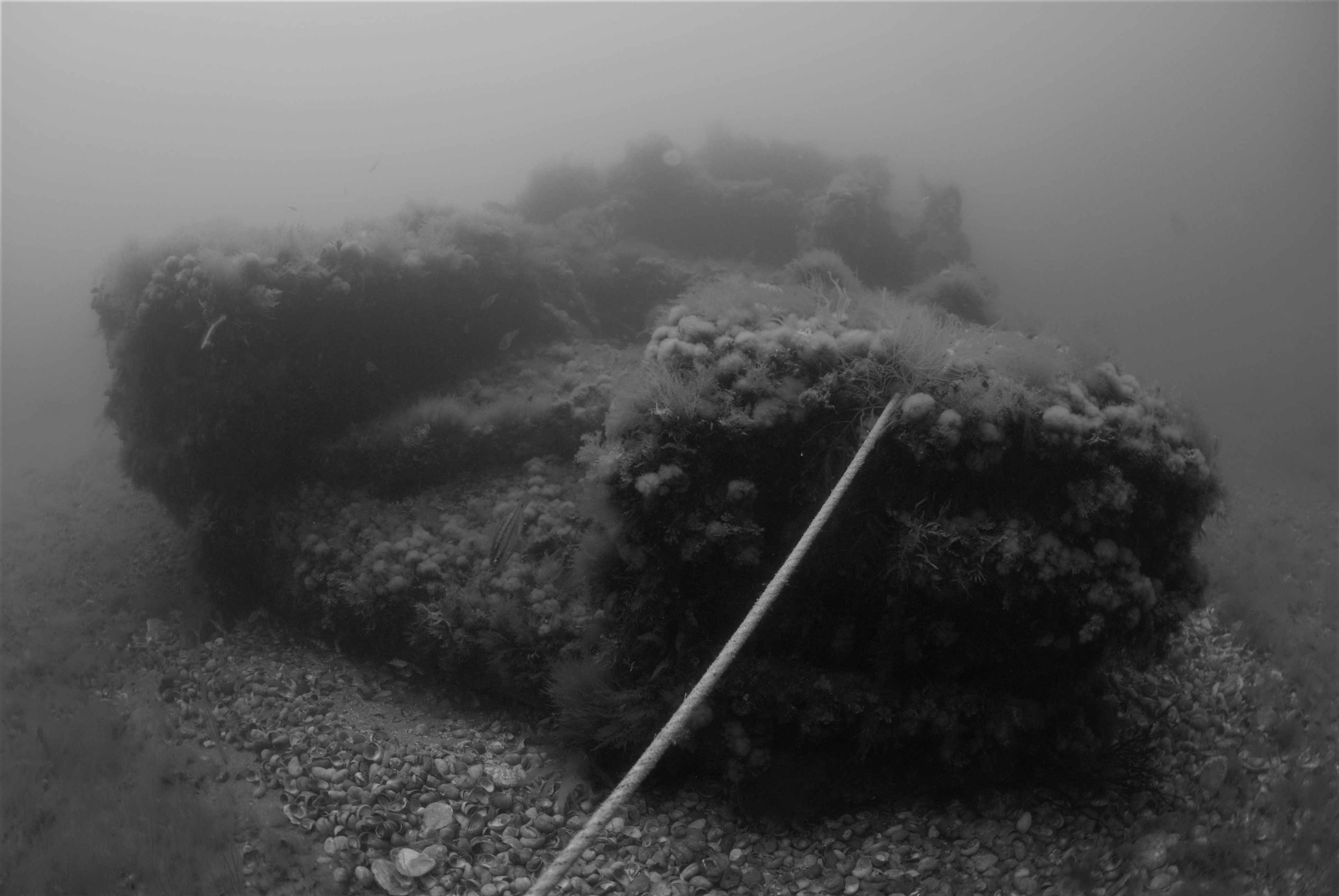 Selsey Bill Sub Aqua Club (SBSAC) have recently re-established weighted lines between the various objects and the trail is once again complete. The permanent buoy which marks the Outer Mulberry (Phoenix Unit) has also been serviced with a new ground chain, ropes at 6m to aid safety stops and ropes on the buoy make it easier for divers to hang on to the buoy and then find the chain below.
